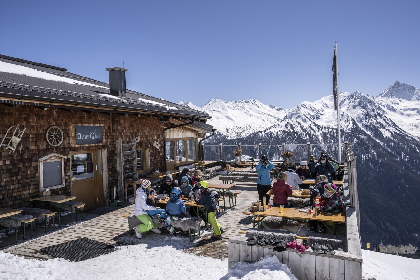 Setz dich auf ein Sonnenbankerl, umgeben von einem traumhaften Bergpanorama und genieße die großzügige Terrasse der Tiroler Hütte auf 2.100 Metern bei der Talstation der Ablittkopfbahn. Hier treffen rustikales Ambiente und Skihütten-Charme aufeinander! Die Hütte ist über die Pisten 5a, 7 und die Skiroute 16 erreichbar. Verwöhne dich mit regionalen Köstlichkeiten und entspanne in dieser idyllischen Lage. Ein Besuch in der Tiroler Hütte ist ein Muss für jeden, der das echte Tiroler Hüttenerlebnis sucht.